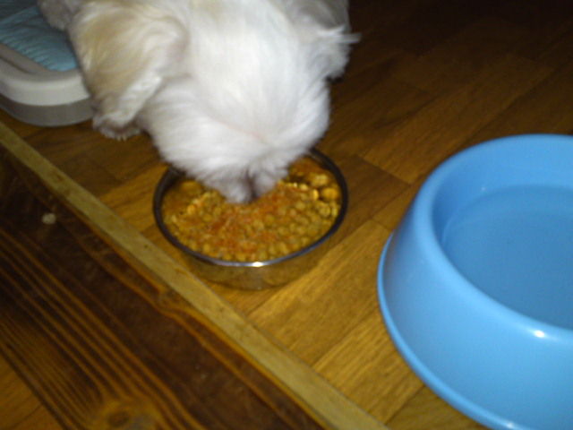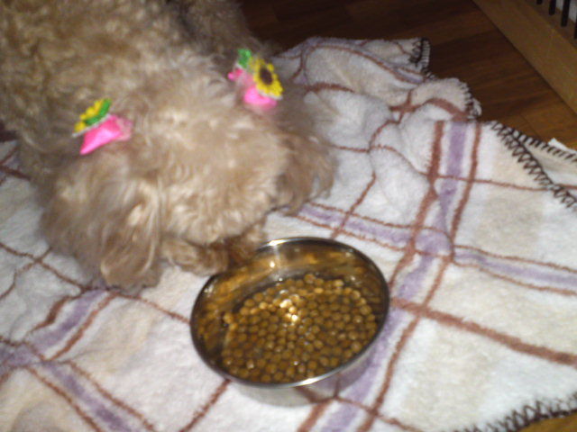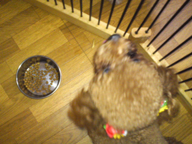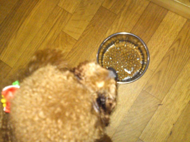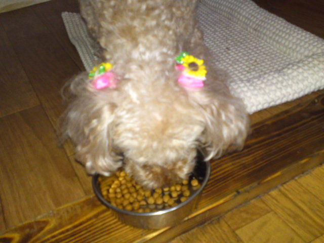 トイプーコロンちゃん、半分食べました。モモちゃん、半分食べました。