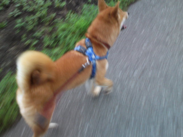 夕方になり少し離れたところから雷のゴロゴロだけが聞こえています。ハチ君、時折止まっては後ろを確認していました。お友達と会えることを期待していたのでしょうか。
