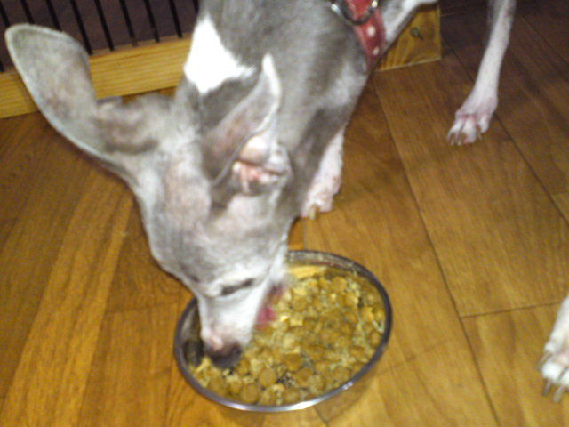 トイプー蘭丸君、口を付けません。 チワワのメイプルちゃん、しっかり完食しました。
