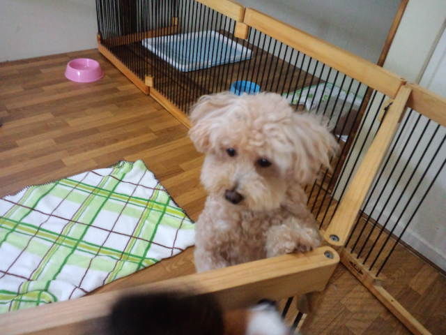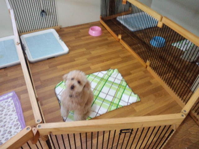 常連トイプーのキキちゃんがチェックインしました。久しぶりかな?キキちゃん。とりあえずサークルで慣れて貰いますね。