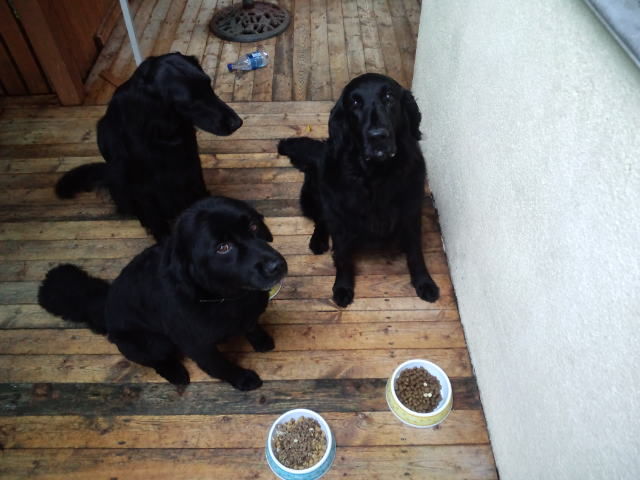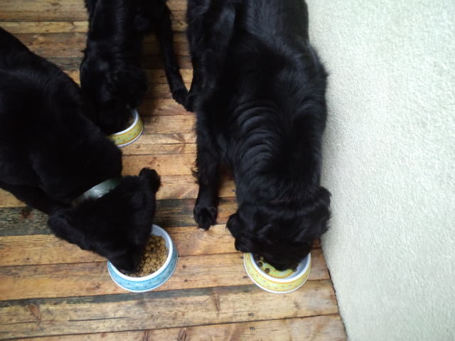 フラットケイ君とジョン君、大治郎と三匹並んで完食しました。