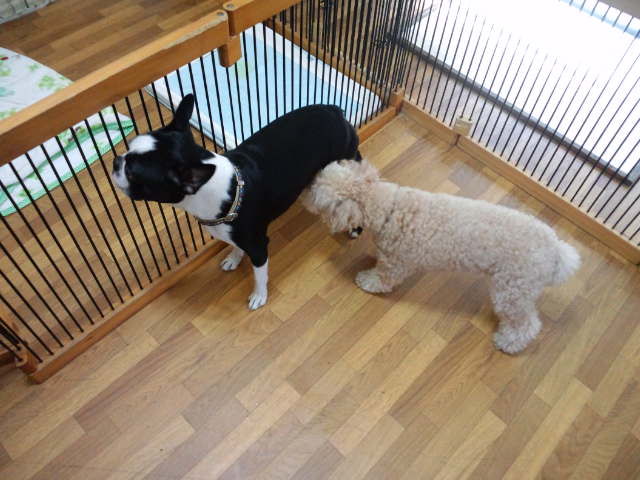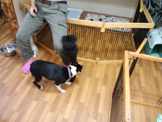 ボストン・テリアの虎太郎君がチェックインしました。 最初は緊張気味で他のワンコはダメかな?って思いましたが、意外にすぐにワンコ達と仲良くしてます。