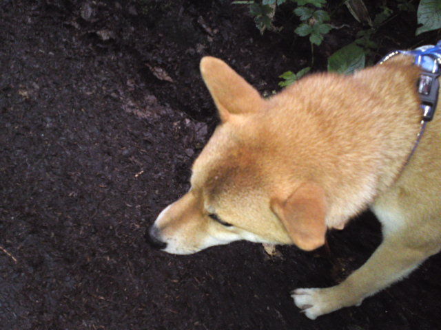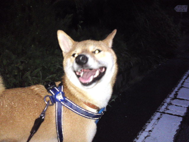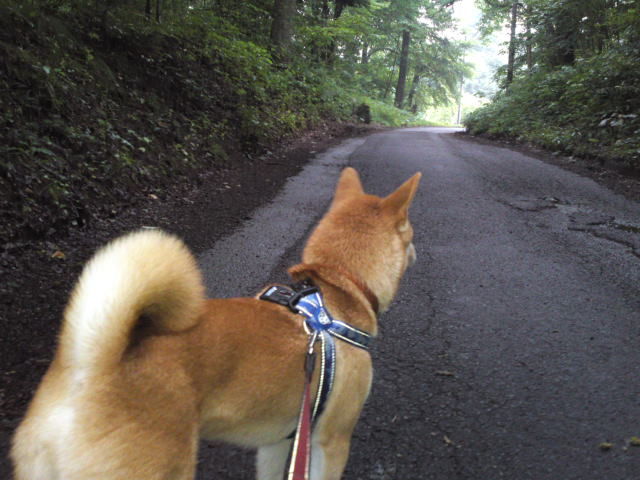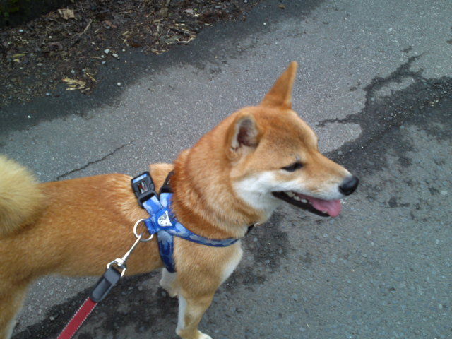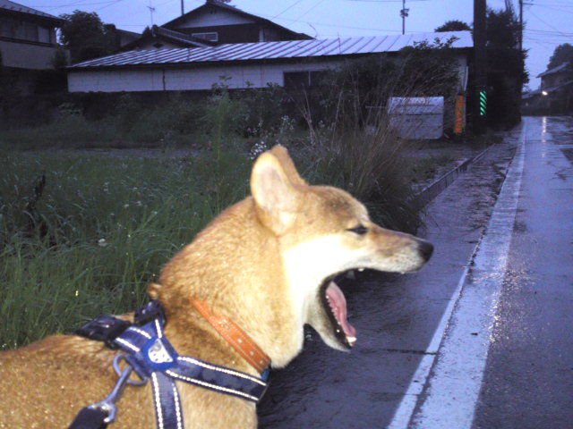 ハチ君、雨降って雷ゴロゴロの散歩は時折ブルブルして毛に着いた水滴をはらっていること以外ははいつも通り足取り軽く楽しそうに歩いていました。