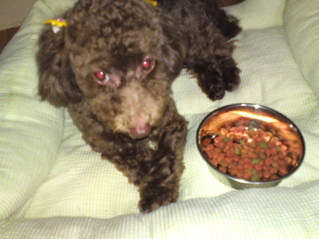 トイプーのももちゃん、この後完食しました。見てないと食べます。