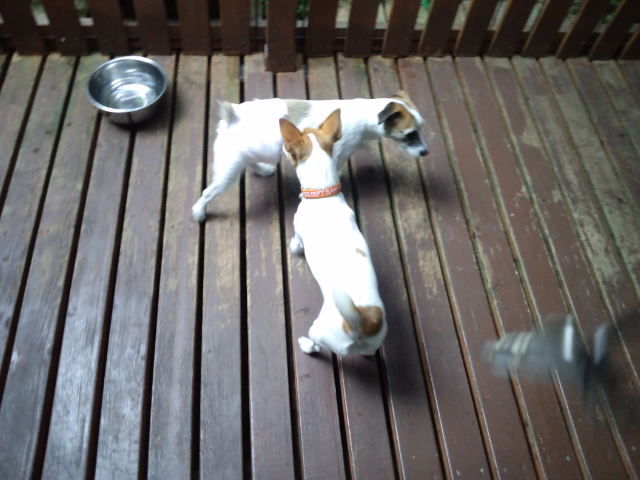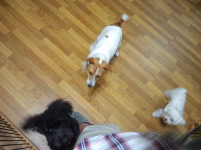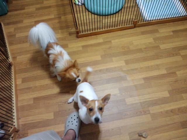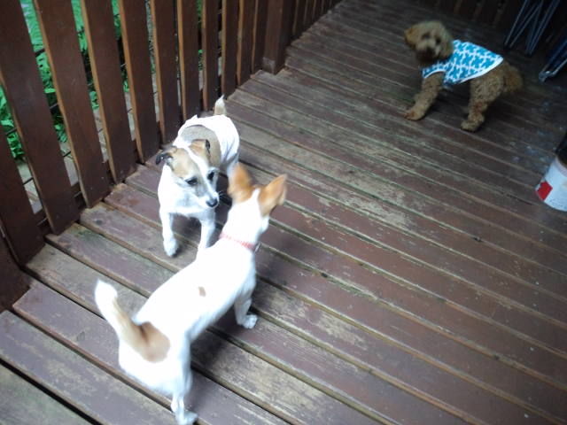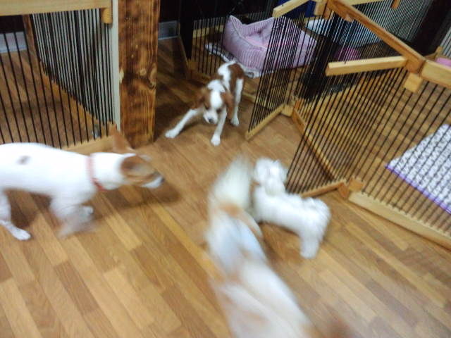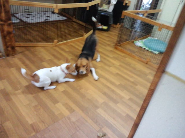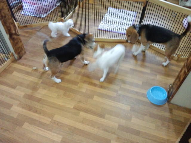 ジャックラッセルのコロンちゃんはビーグルちゃんズどいっぱい遊んでます。ソンちゃんとは良いコンビになってます。