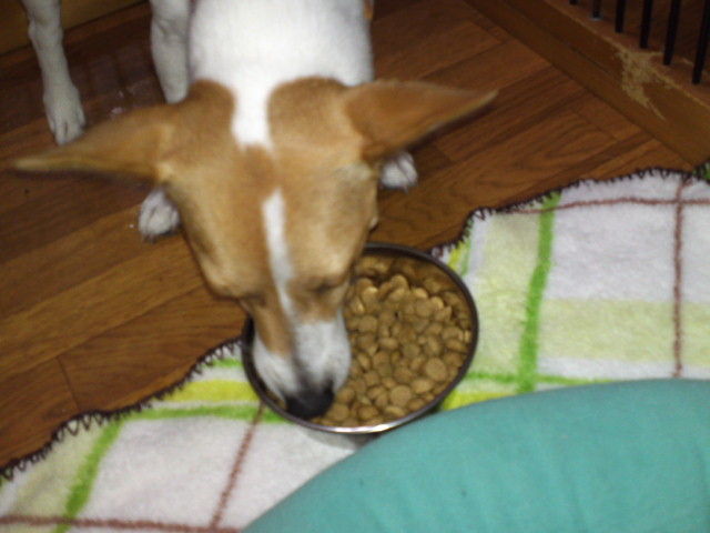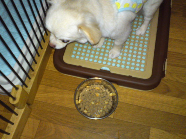 ジャックラッセルのコロンちゃん、しっかり完食しました。 チワワのふうちゃん、口を付けません。そのまま置いておきます。