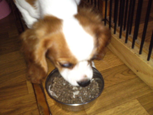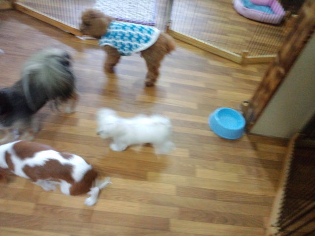 キャバリアのめぐちゃん、少し口を付けただけです。そのまま置いておきます。