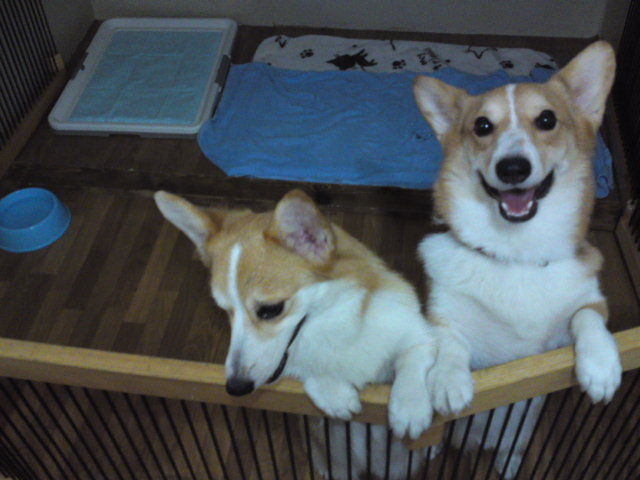 コーギーちゃんズのゆずちゃんとカリンちゃん、しっかり完食しました。