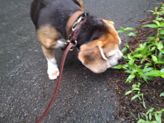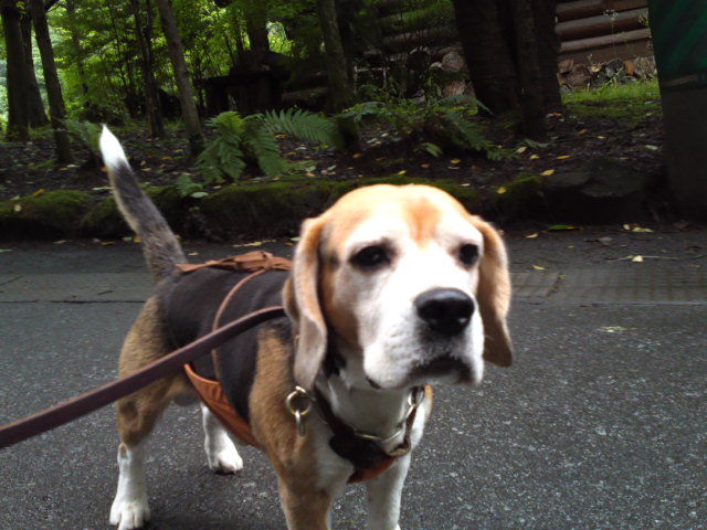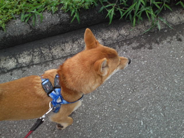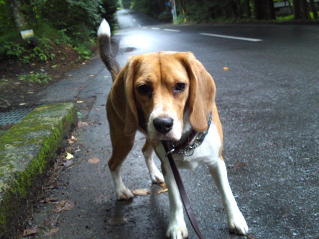 雨も上がりで人も車もいない別荘地内はとてもすがすがしく、鳥たちのBGMを聴きながらのお散歩は、タラちゃんいつも通りマイペースでしたがマーキングの回数が少なかったようです。