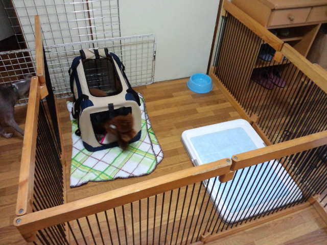 トイプーのチョビ君がチェックインしました。 チョビ君はまだ6カ月のパピー君です。 ハウスから出てサークル越しにイタグレ君の匂いを嗅いで、すぐにまたハウスに閉じこもってしまいました。そのままそっとしておきます。