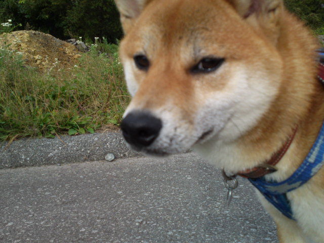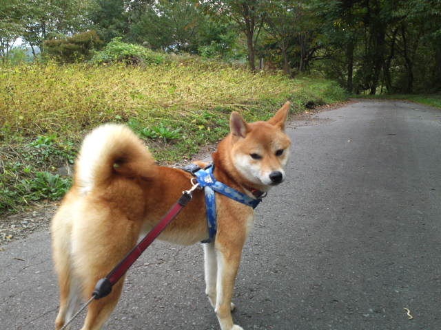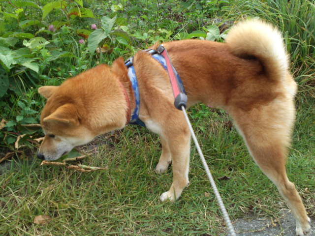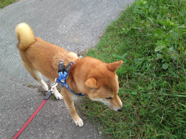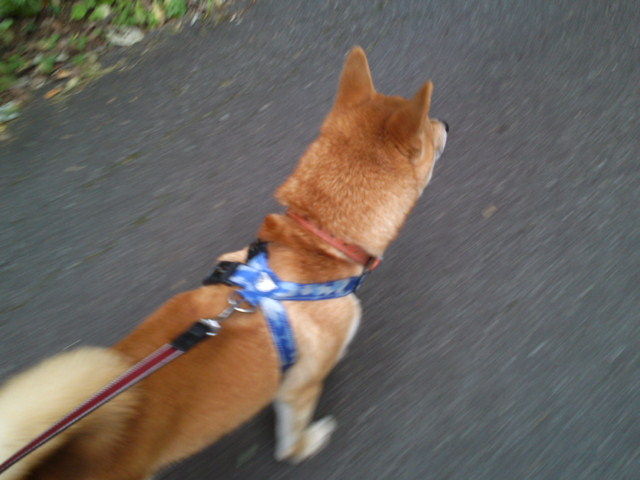 お散歩の途中で雨が降ってきました。ハチ君は雨が大好きなので楽しそうにお散歩していました。