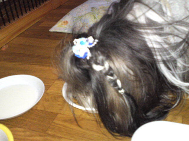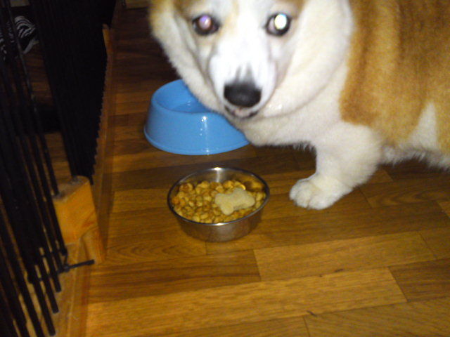 コーギーナナちゃん、口を付けません。おやつは食べます。