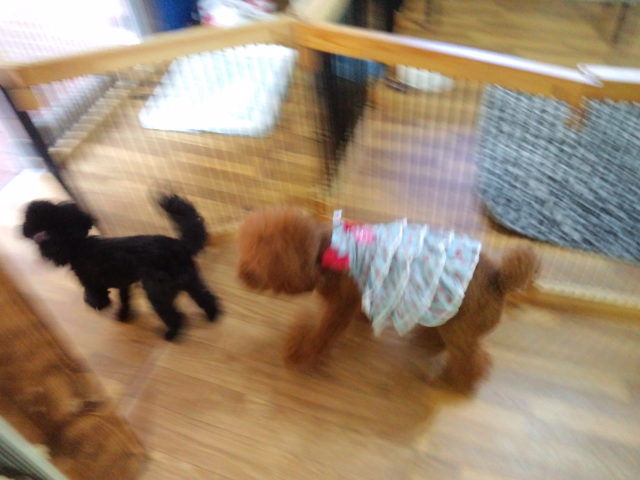 人なつっこいモナちゃん、すぐに甘えてきます。サークルから出て匂いを嗅いで回ってます。