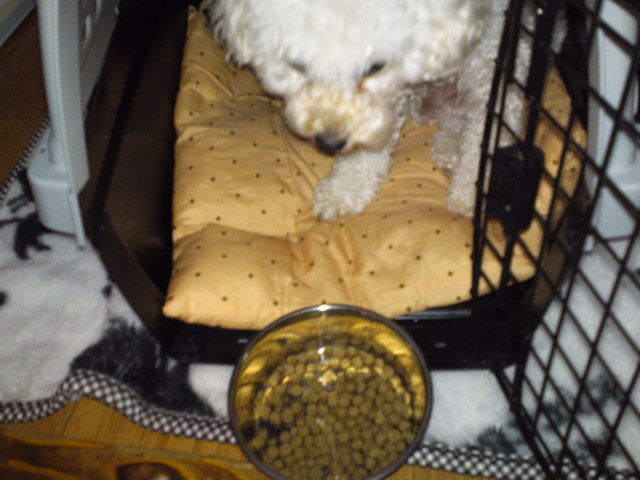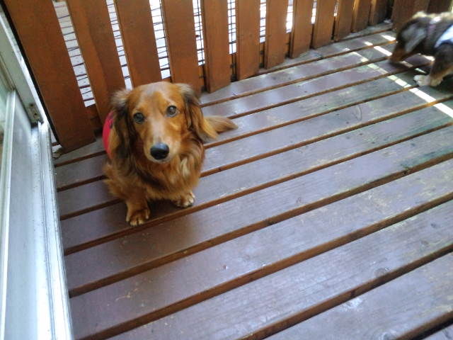 ダックスサリーちゃん、口を付けません。ハウスから出てきません。