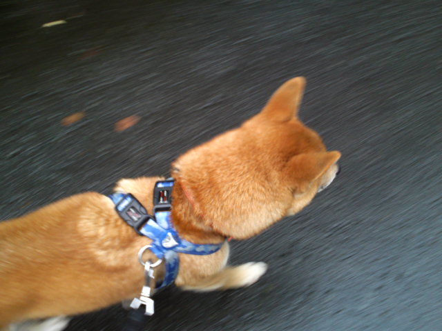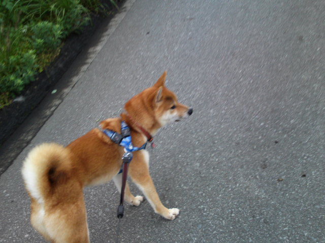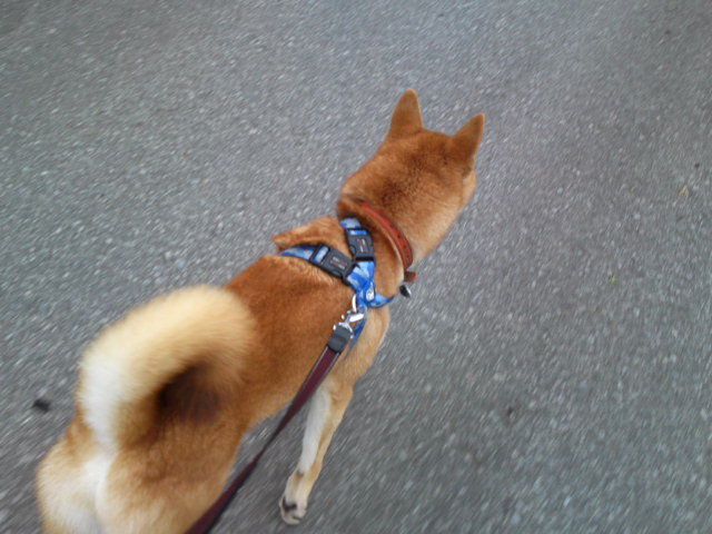 台風が去るまでは当分雨は続きそうです。ハチ君は雨が大好きなのでいつも通りお尻フリフリで歩いていました。