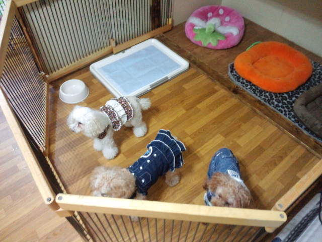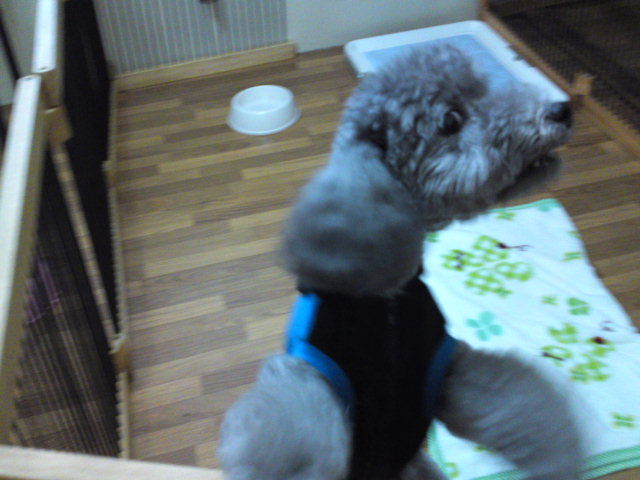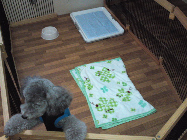 昨日に引き続き、トイプーエス君がチェックインしました。 ご飯は口を付けません。