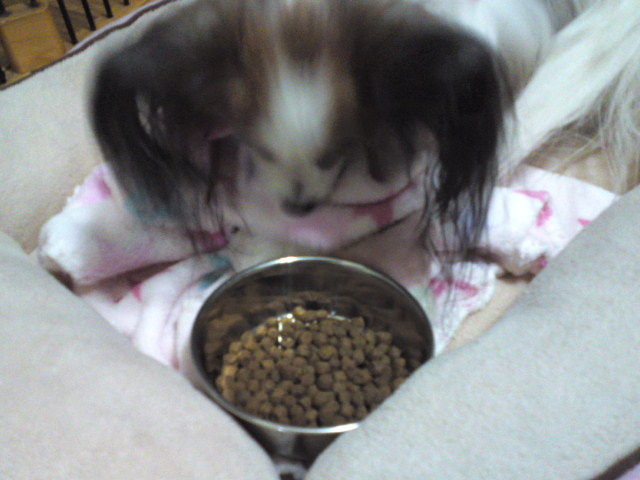 パピヨンぷりんちゃん、少し口を付けただけです。