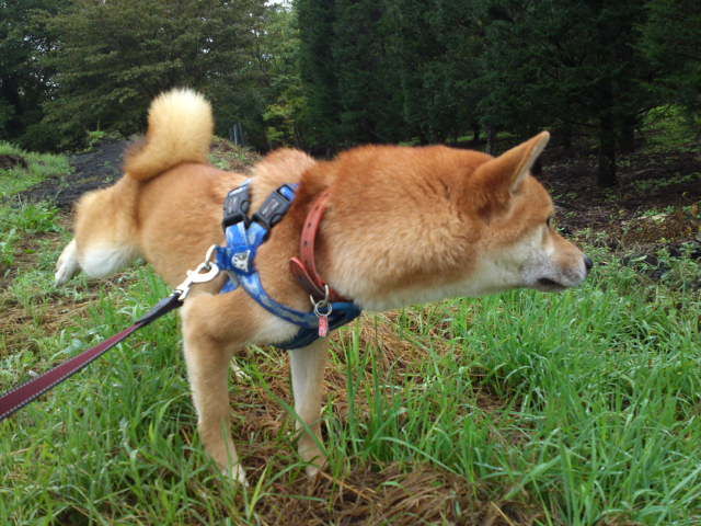 今朝は台風も明けて晴れてきています。ハチ君、風の匂いを嗅ぎながら歩いていました。