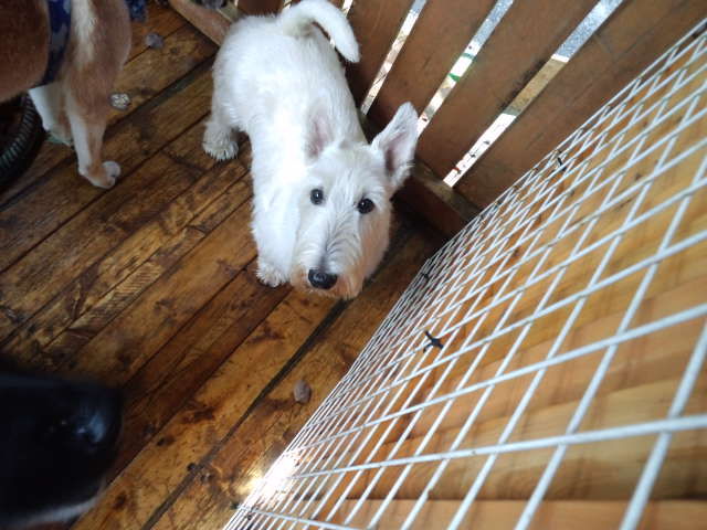 常連ラブラドールの絵里ちゃんと、二回目スコッチテリアのサンタ君がチェックインしました。