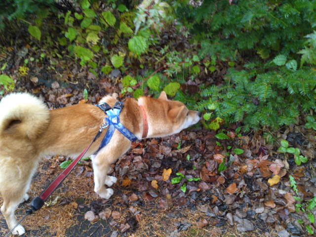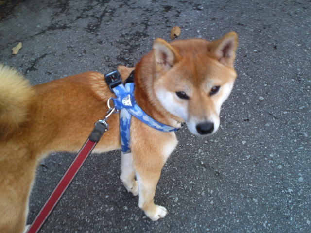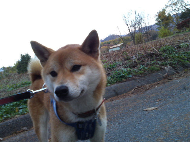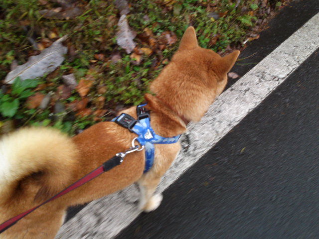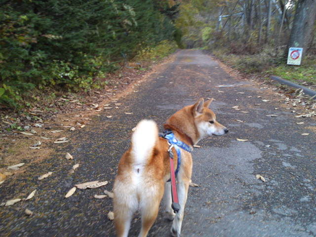 陽が陰ると寒くなりましたが歩いていると気持ちよく感じます。ハチ君は遠くで犬が吠えているのが気になってなかなか歩きませんでした。