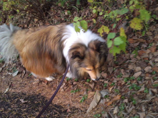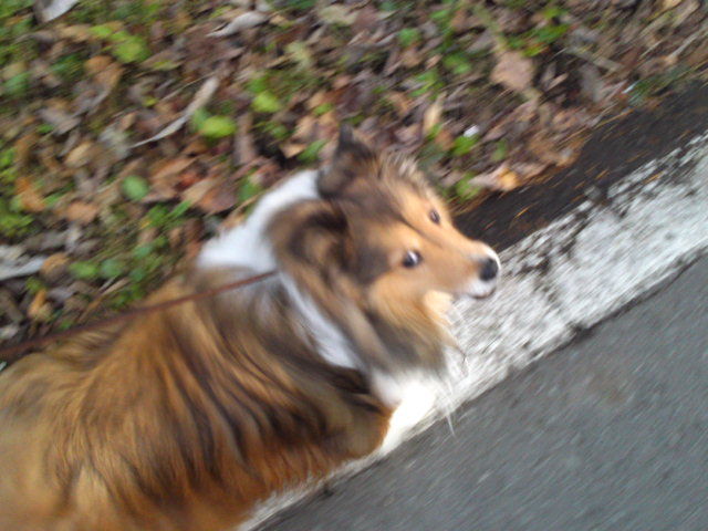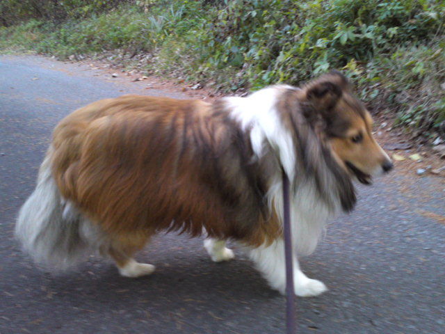 シェルティのローズちゃん、一緒に歩いていると気になるらしくこちらを何度もみながら歩いていました。 オシッコは何回もしましたが、うん〇はしませんでした。