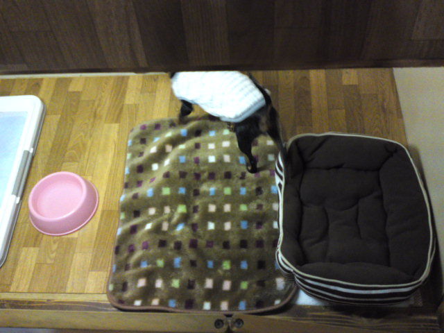 お腹が下痢してたハチ君、夕方は少し柔らかいですが形にはなってるウン〇でした