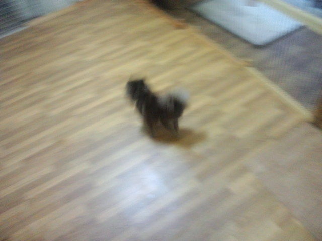 すぐにサークルから出て店内の匂いをクンクンして探検してます。