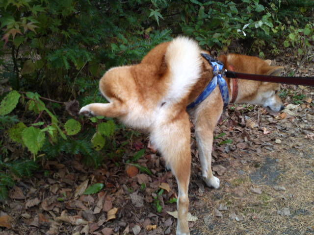 ちょうど雨が上がったところでハチ君のお散歩に出掛けました。