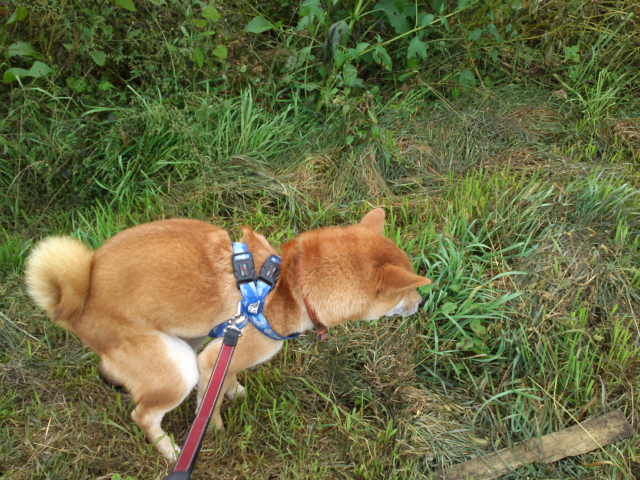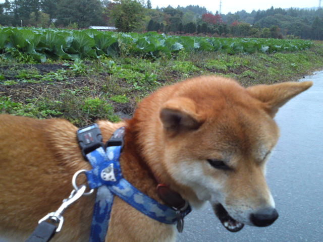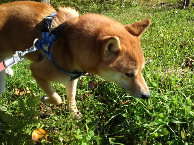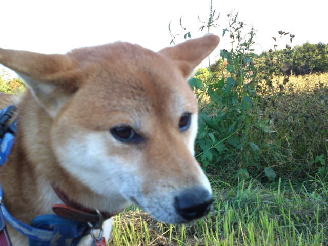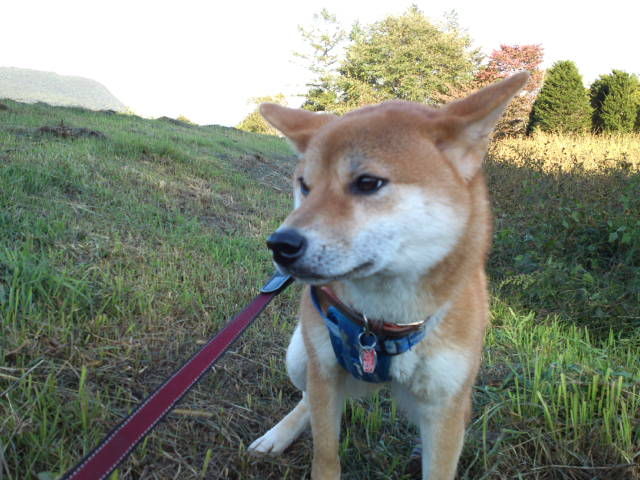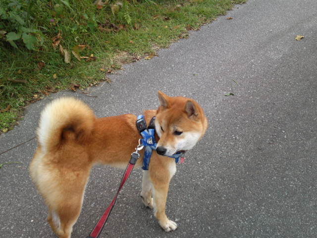 風は冷たいけれど、今日も秋晴れの1日になりそうです。ハチ君、朝から見知らぬワンコと出会い興奮していました。