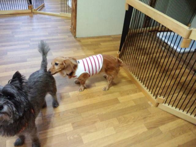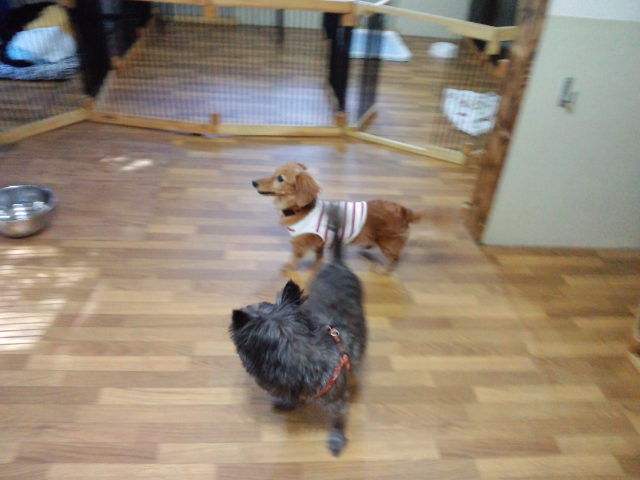 ミニピンのチーズちゃん、キャバリアのさくらちゃんチェックインしました。
