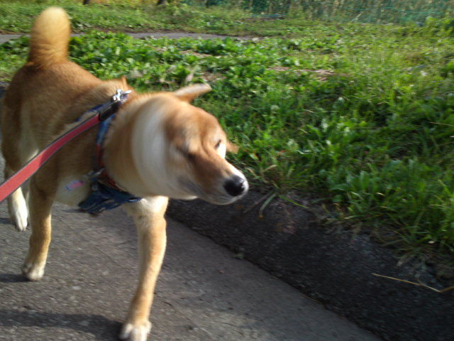 ハチ君、午後のお散歩もお尻フリフリ元気に歩いていました。