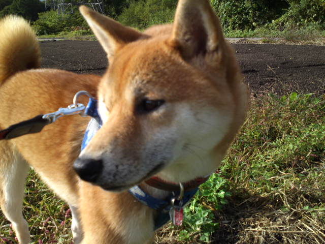 今朝はとてもよく晴れて青空が広がっています。ハチ君、気持ち良さそうにのんびりお散歩を楽しみました。