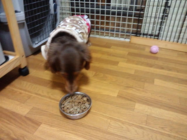チワワのツギ君、晩御飯は完食してました。朝は口を付けません。それから外に出してもオシッコをしないです。