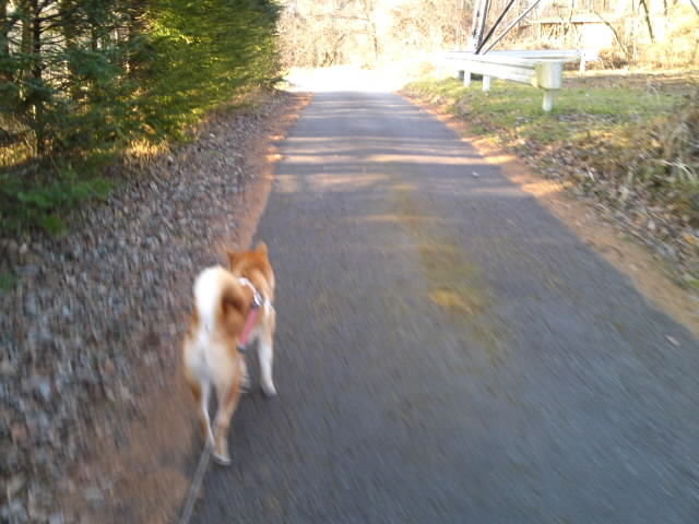 夕方は風もなく穏やかな空気に包まれています。ハチ君、楽しそうに走り回っては飛び付いてきました。
