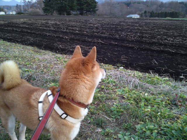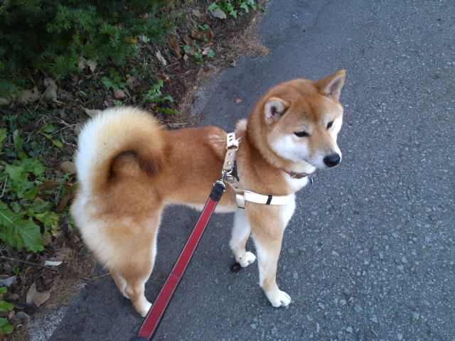 今朝は少しずつ晴れ間が出て来てます。ハチ君、たくさん匂いを嗅ぎながらお散歩しました。