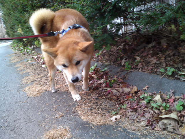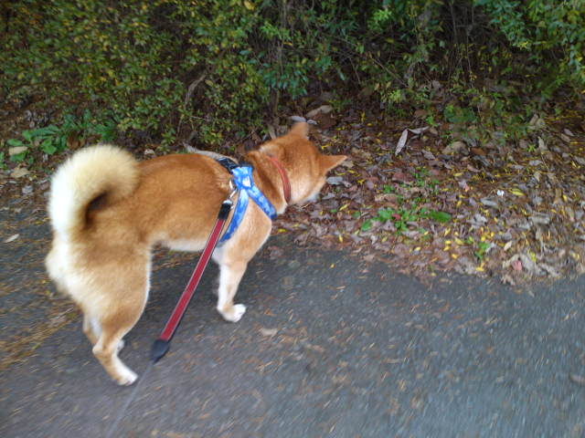 今朝は曇っていてとても寒く風が冷たく感じます。ハチ君、丹念に匂い嗅いでいました。