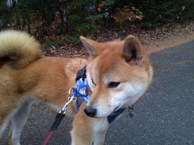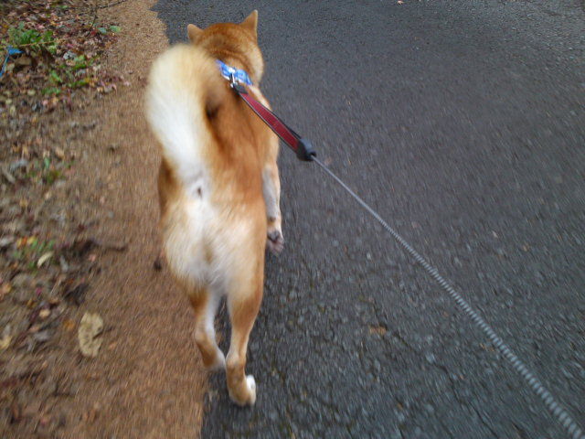 今朝は曇っていますが晴れ間が出そうな感じです。ハチ君、お友達に会いたいのか首を長くして遠くを見ながら歩いていました。