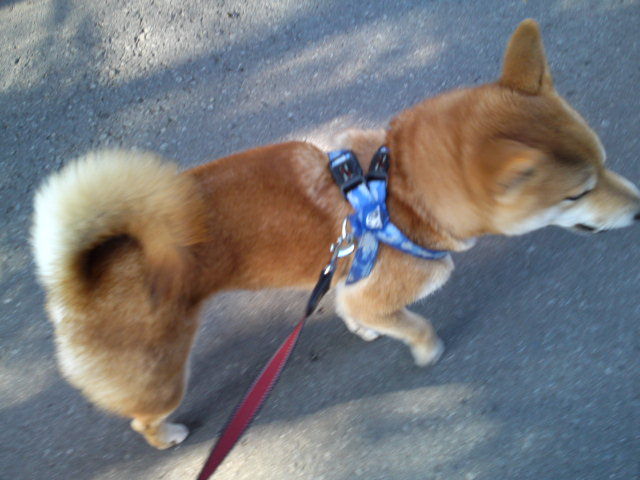 朝からとてもよく晴れています。ハチ君今日も楽しそうにお尻フリフリ元気に歩いています。