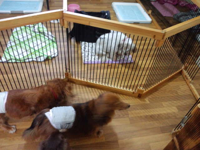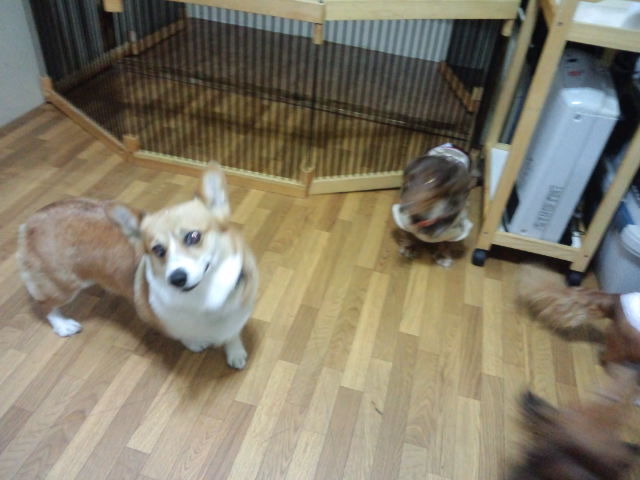 早く中に入りたいらしく、入ったらすぐに大治郎やビーちゃんと遊んでます。柴ハチ君が里帰りで居ないのが残念かな?