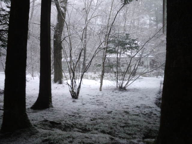 今朝の軽井沢の気温はマイナス1℃。 昨日から降った雪は積もりました。初雪ですね。