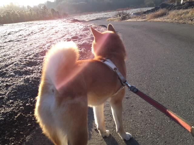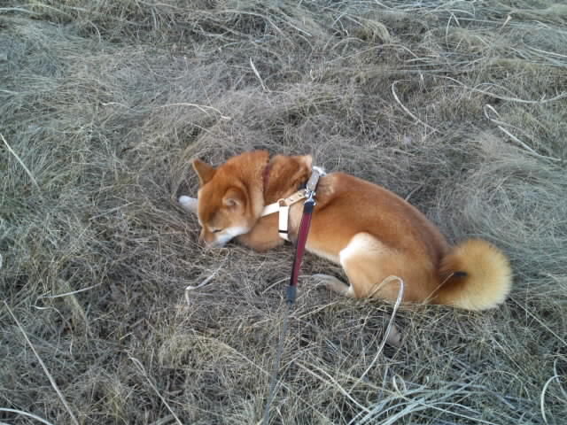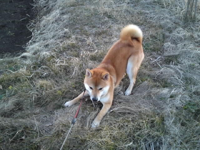 夕方のハチ君のお散歩は、思いっきり走り回ってスッキリしたようです。