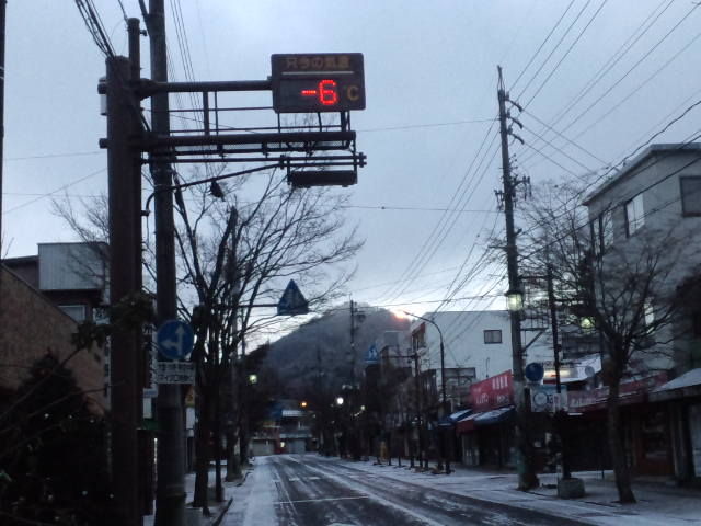 今朝の軽井沢の気温はマイナス6℃、天気は曇ってます。 夕べは雪が舞ってうっすら積もってます。