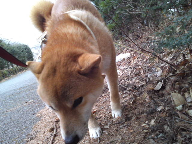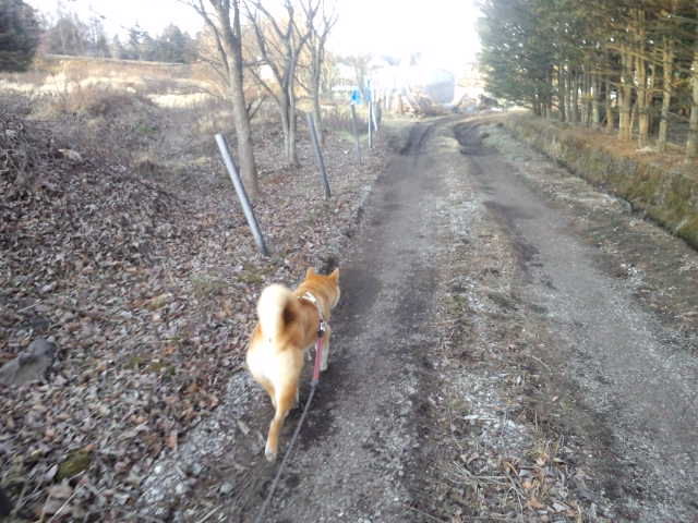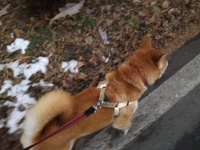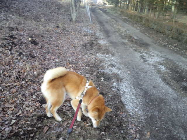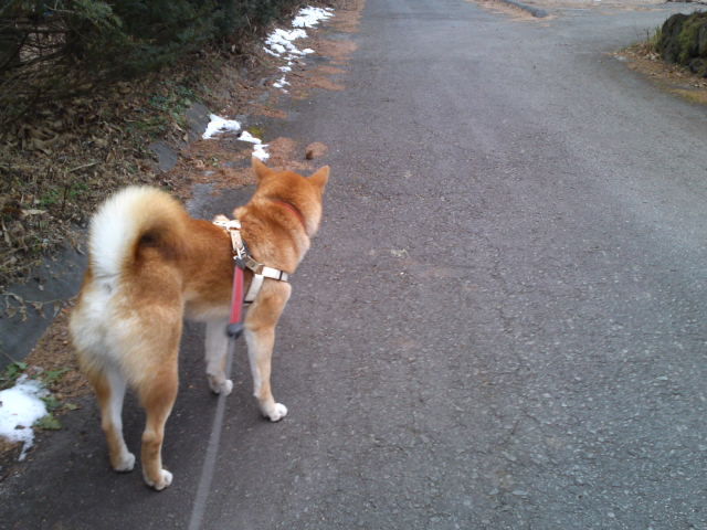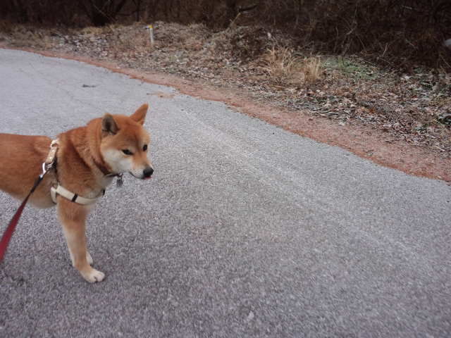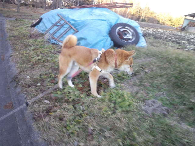 柴ハチ君は夕方もスタスタ歩いてます。せっかくシャンプーしたので、あまり汚れた所には行かないでな