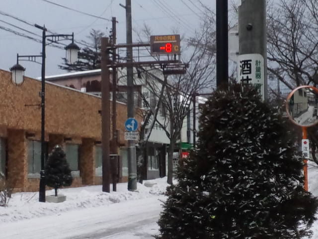 今朝の軽井沢の気温はマイナス8℃、天気は雪が降ってます。
