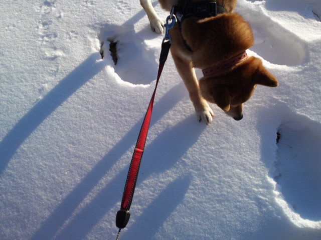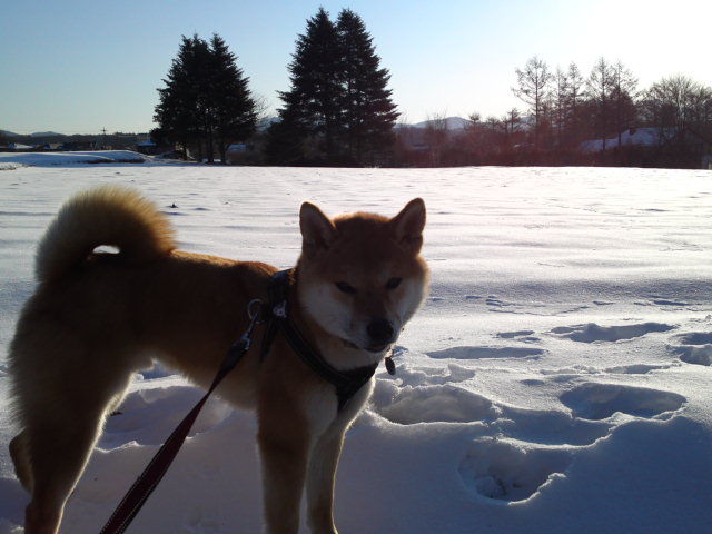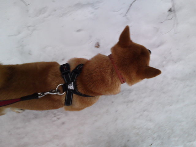 今朝は曇っていますが風もなく寒さも穏やかに感じます。ハチ君、凍りついた路面に足を取られながら歩いてる姿がカワイイです。