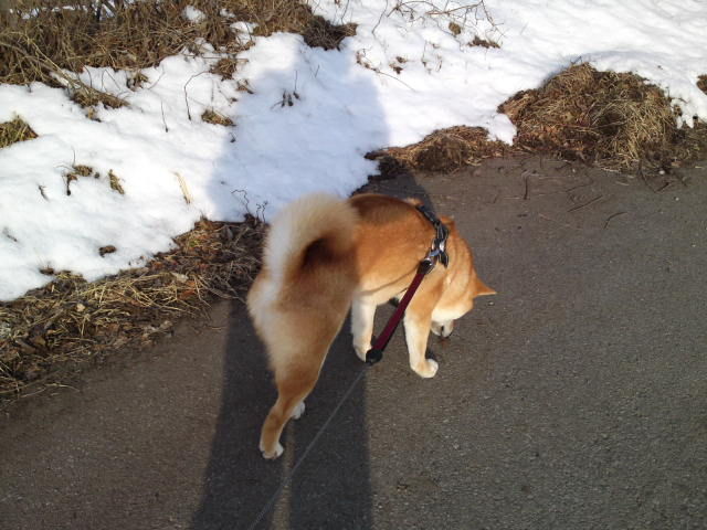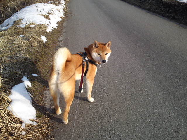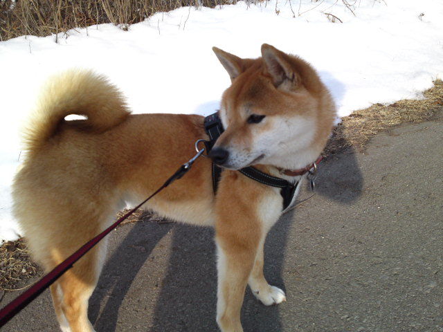 今朝は晴れていますが風が冷たく感じます。ハチ君、ウンチをたくさんしてスッキリした様子です。