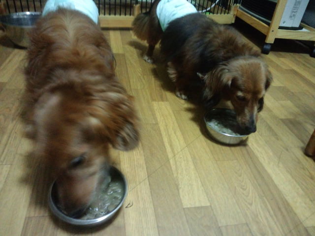 長期預かりダックスズのラブ君とチャコ君、しっかり完食しました。