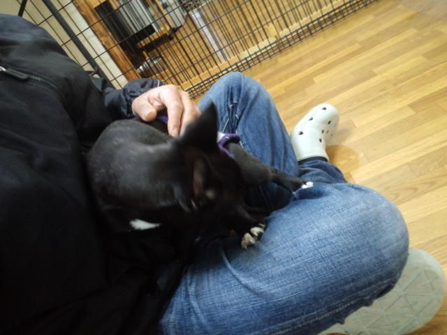 フレブルホーリーちゃんは店長の膝で寛いでます。