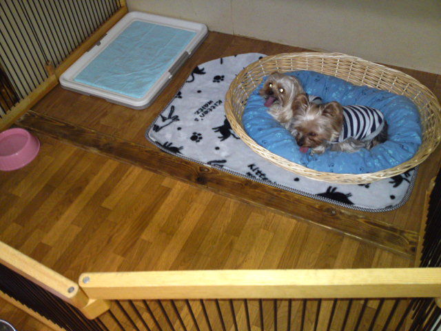ヨーキーのモモちゃんタロウ君チェックインしました。マイベッドで大人しくお留守番しています。