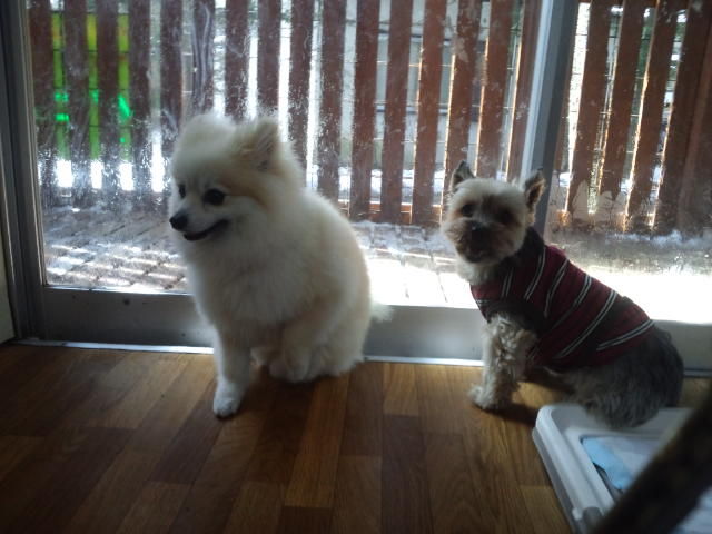 ポメラニアンプリンちゃんは一番緊張してるかな?ヨーキーララちゃんとコッカーアルフ君は少し慣れた様子。